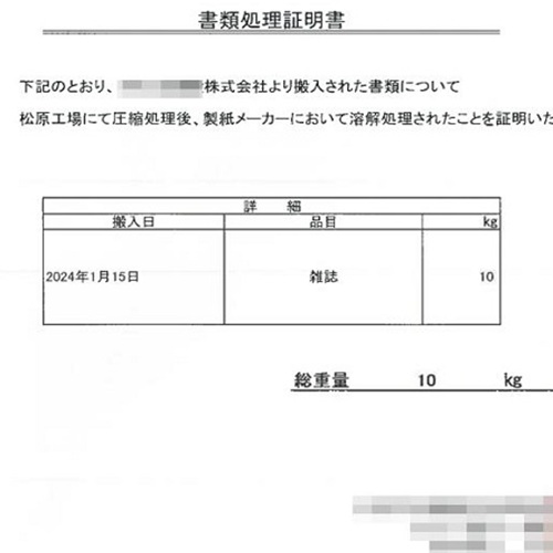 では重要な個人情報を扱う業者としてどのような対策が必要でしょうか…。一般的には、紙ベースの書類や電子ベースのパソコンなどの電子機器の個人情報は、破砕処理と溶解処理されます。もちろん、メモリーズでは法令に準じて適切に処理しています。有料ではありますが、ご要望に応じ「破砕証明書」と「溶解証明書」を提携処理会社より発行もしています。ちなみに破砕証明書は1週間程度、溶解証明書は1か月程度で発行されますので、その後ご依頼者様に郵送しています。ご不安がある場合は是非ご用命下さい。